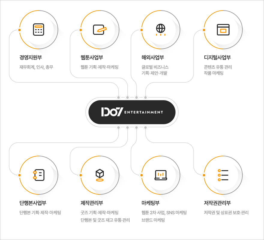 주요 웹툰 기획작 <나 혼자만 레벨업> <황제의 외동딸> <인소의 법칙> <버림 받은 황비> <날것> <악역의 엔딩은 죽음뿐>